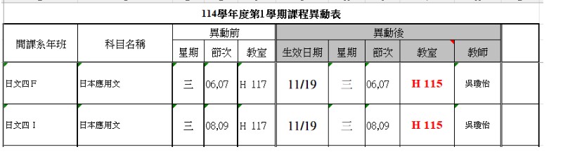 114學年度第1學期教室異動